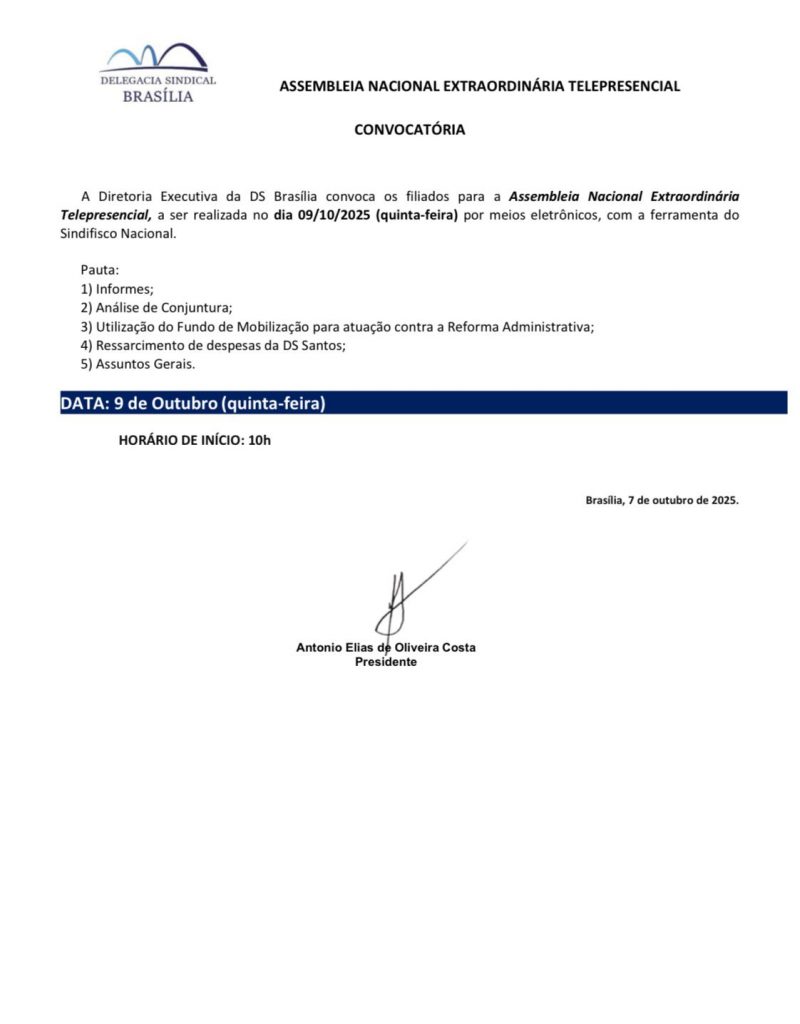 Convocatória – Assembleia Nacional Extraordinária (09/10/2025)
